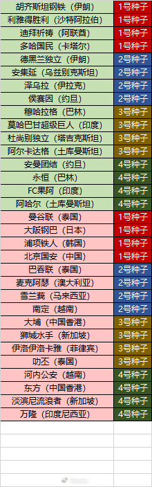 亚冠二级联赛今日下午抽签, 北京国安、利雅得胜利为1号种子