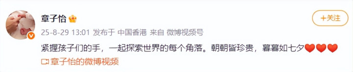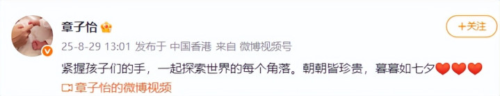 2025年8月29日,章子怡晒出了一条官宣视频,并配文:朝朝皆珍贵,暮暮如七夕!