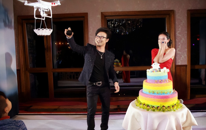 2015年2月7日,汪峰在章子怡的生日派对上,用无人机送上了一枚9克拉的大钻戒。