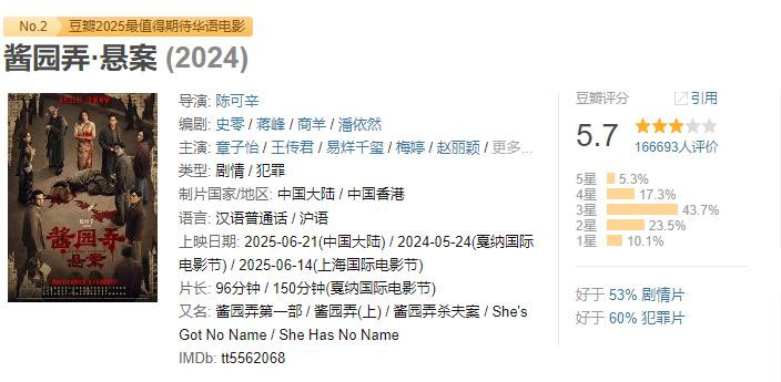 该电影在豆瓣上的评分虽然只有5.7,但观众的口碑却非常一致。