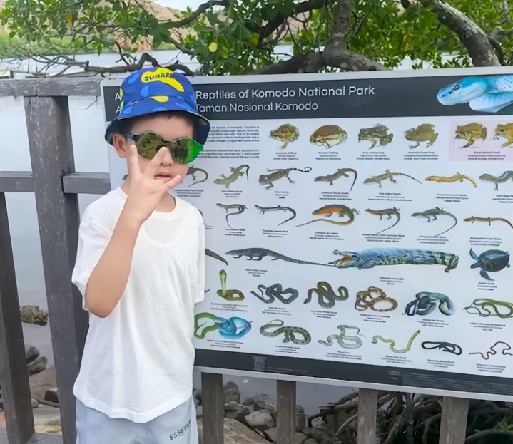七夕当天,章子怡的“约会对象”是自己的两个孩子,她带着大宝二宝来到了动物园,观看了大蜥蜴。