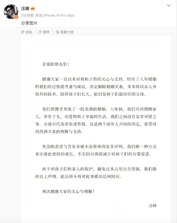 本以为他们这份感情会一直持续下去,谁曾想在2023年的时候,两人共同发声,决定接触婚姻关系。