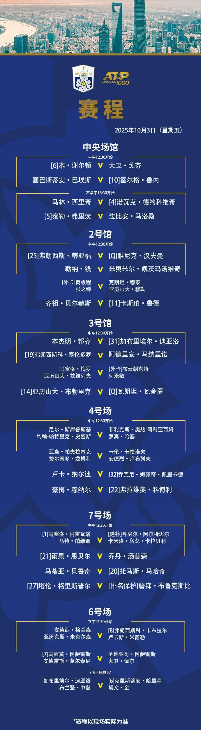 虎扑10月03日讯10月3日,中网女单半决赛将继续进行,26号种子诺斯科娃对阵卡塔尔,佩古拉与纳瓦罗将上演大富二富之战。与此同时,上海大师赛第二轮将开打,德约将于晚场亮相中央球场。